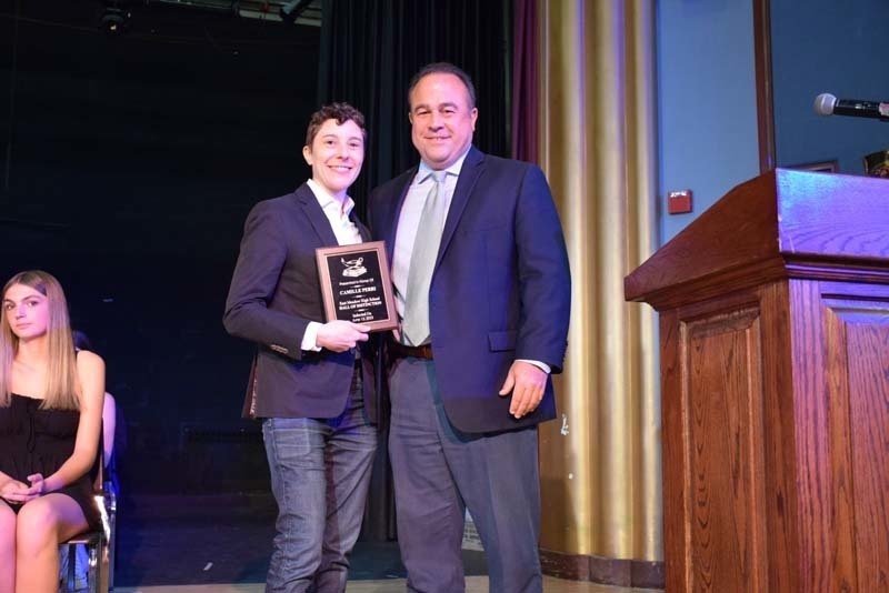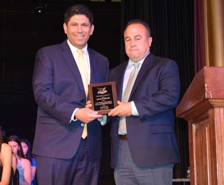 The evening kicked off with the Hall of Distinction induction ceremony, which honors exceptional alumni for their accomplishments in either their individual fields of endeavor or their contributions to the broader community. These nominees serve as role models for East Meadow’s current students. This year, Rich Barrabi, Class of 2003; Camille Perry, Class of 1997; and Kenneth Sepe, Class of 1958, were inducted.