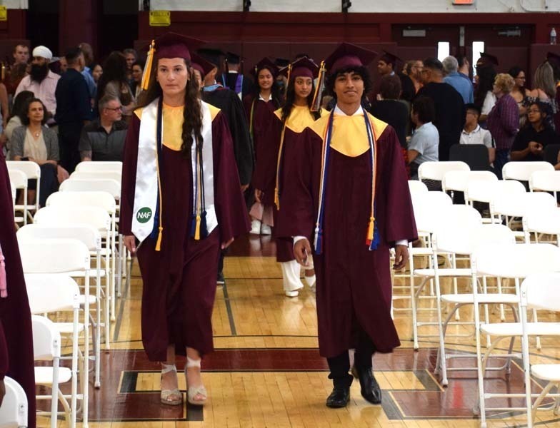 The graduates proudly processed into the gymnasium to the sound of the classic “Pomp and Circumstance.” They were accompanied by the East Meadow Board of Education, Superintendent of Schools Dr. Kenneth A. Card Jr., central and district administrators, Principal Timothy Voels, and W.T. Clarke administration, faculty and staff.