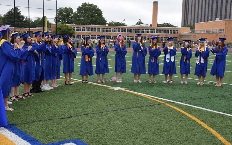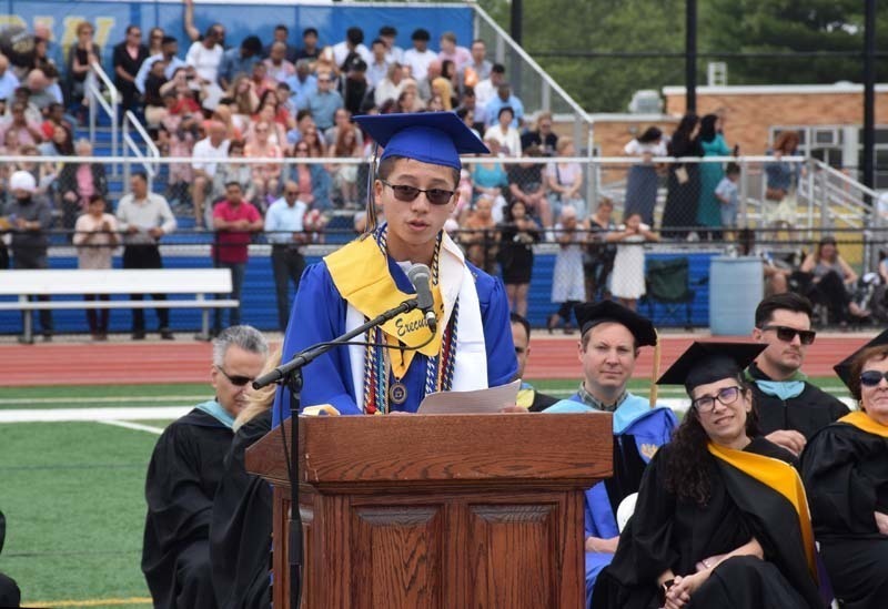 The event kicked off with a rendition of the national anthem by the senior chorale, and were joined by a group of students performing the song in American Sign Language. Superintendent of Schools Dr. Kenneth A. Card Jr. and Board of Education President Alisa Baroukh each addressed the graduates. Ms. Baroukh spoke about sharing this moment with her daughter, Valedictorian Addison Baroukh.